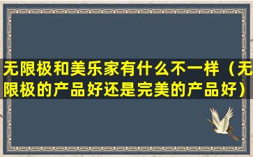 无限极(Infinitus)和完美(Perfect)都是中国的直销公司,它们生产和销售各种健康、美容和个人护理产品。两家公司都声称其产品基于传统中医理论,并结合现代科技。关于哪个品牌的产品更好,这很大程度上取决于个人的需求、偏好和体验。
