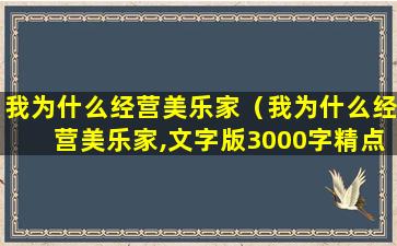 "我为什么经营美乐家"这个问题可能需要更多的上下文信息来提供一个准确的答案。如果你是在询问为什么选择经营美乐家(Melaleuca)这家公司,那么可能的原因包括: