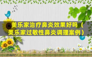 美乐家(Meilijia)并不是一个我所熟知的品牌或产品,因此我无法提供关于其治疗鼻炎效果的具体信息。鼻炎是一种常见的疾病,其治疗通常包括药物治疗、生活方式的调整以及在某些情况下的手术治疗。
