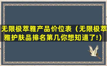 由于产品价格可能会随时间、地区、促销活动等因素变化,我无法提供一个确切的“无限极萃雅产品价位表”。通常,无限极的产品价格可以在其官方网站、授权的零售商或通过官方客服查询到。