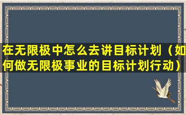 无限极是一家以健康产品为主的公司,其业务模式包括直销。在无限极中讲目标计划,通常是指如何设定和达成个人的销售目标或团队发展目标。以下是一些步骤和建议,可以帮助你在无限极中有效地讲目标计划: