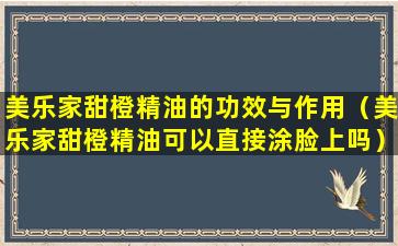 请注意,以上信息仅供参考,具体使用时应遵循产品说明或咨询专业人士。如果您购买的是美乐家品牌的甜橙精油,建议查阅该产品的具体使用说明和安全指南。