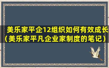 请注意,这些建议是基于一般性的直销组织成长策略,并不特定于美乐家或"平企12组织"。如果你需要针对特定组织或公司的具体建议,可能需要更详细的信息和上下文。