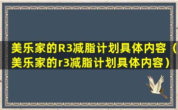 由于我无法访问最新的数据或特定产品的详细信息,建议直接访问美乐家的官方网站或联系他们的客户服务以获取最准确和最新的r3减脂计划信息。