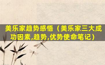 关于“美乐家趋势感悟”,这可能指的是对美乐家公司发展趋势的观察和思考。以下是一些可能的趋势感悟: