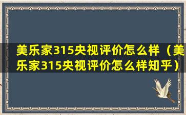 如果你想了解美乐家在315晚会上的具体评价,或者在知乎上的用户讨论,建议直接搜索相关内容,因为这些信息可能会随着时间和具体情况的变化而变化。同时,对于任何公司的评价,都应该综合多方面的信息和意见,以获得一个全面的了解。