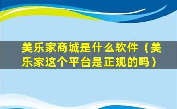 美乐家商城并不是一个软件,而是一个在线购物平台。它通常通过网页或者手机应用程序的形式提供服务。如果你想访问美乐家商城,可以直接在网页浏览器中输入其官方网址,或者在手机应用商店搜索“美乐家”下载其官方应用程序。