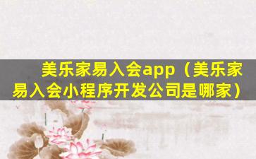 关于“美乐家易入会app”,这可能是指美乐家提供的一个移动应用程序,旨在帮助潜在会员更容易地加入美乐家会员计划。这个应用程序可能包含注册流程、产品信息、订单管理等功能。