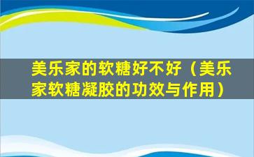 是否“好”是一个主观的评价,取决于个人的口味偏好、对食品质量的要求以及对品牌的信任度。如果你对美乐家的软糖感兴趣,可以尝试购买一些来亲自体验其口味和质地。同时,考虑到个人健康状况和饮食习惯,适量食用软糖是明智的选择。