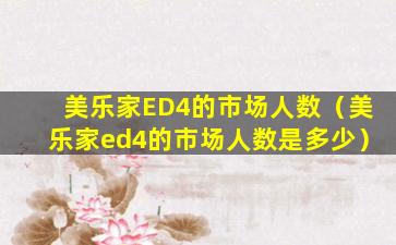 "ED4"是美乐家内部的一个较高级别的职位,通常意味着该级别的经销商已经达到了一定的销售业绩和团队规模。具体的市场人数会根据不同的经销商和市场情况而有所不同,因此很难给出一个确切的数字。