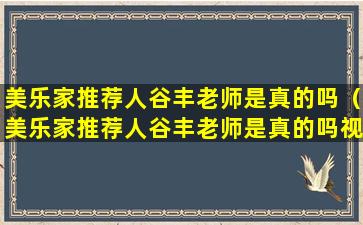 关于“美乐家推荐人谷丰老师”的视频,我无法提供具体的真实性评估,因为这需要对视频内容进行详细的分析和验证。在互联网上,任何人都可以发布视频,但并非所有视频内容都是真实或准确的。如果您遇到了这样的视频,建议您采取以下几个步骤来判断其真实性: