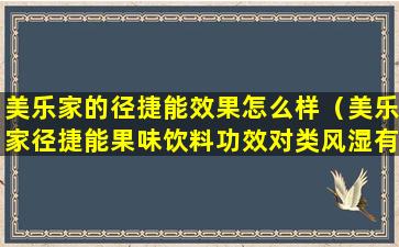 美乐家径捷能果味饮料是一种营养补充饮料,它含有多种维生素和矿物质,旨在帮助补充日常饮食中可能缺乏的营养素。关于它对类风湿(一种慢性炎症性关节疾病)的具体功效,目前没有科学研究或官方声明支持其具有治疗类风湿的效果。