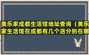 4. 搜索引擎:在搜索引擎中输入“美乐家成都生活馆地址”进行搜索,可能会找到相关信息。