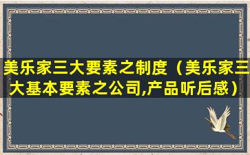 美乐家(Melaleuca)是一家以健康和环保产品为主的公司,其三大基本要素通常指的是公司、产品和市场。以下是对这三个要素的听后感: