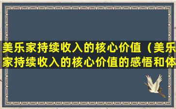 以下是对美乐家持续收入核心价值的感悟和体会: