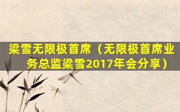 由于我无法提供具体的演讲内容,因为这需要访问实时的或存档的会议记录,而这些信息可能受版权保护或未公开发布。如果您需要了解无限极首席业务总监梁雪在2017年会上的具体分享内容,建议直接联系无限极公司或查找相关的官方新闻发布和媒体报道。