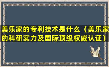 具体的专利技术和详细信息通常是公司的商业机密,不会公开详细披露。如果想要了解美乐家的具体专利技术,可以通过美国专利商标局(USPTO)或其他国家的相应机构查询相关的专利文件。这些文件通常会提供技术描述、申请日期、发明人信息以及专利保护的范围。