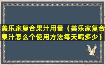 美乐家复合果汁(MelaFit Juice)是美乐家公司生产的一款营养补充饮品,它含有多种水果和植物成分,旨在提供抗氧化剂和其他营养素。关于美乐家复合果汁的用量,通常建议的用法如下: