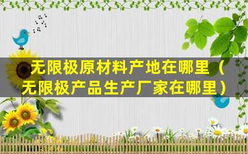 无限极(Infinitus)是一家中国的健康产品公司,隶属于香港李锦记集团。无限极的产品包括中草药健康产品、个人护理产品、家居护理产品等。无限极的原材料产地遍布全球,包括中国大陆、东南亚、欧洲等地,具体产地取决于原材料的种类和品质。