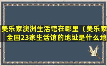 截至我所知的信息,美乐家(Melaleuca)是一家美国的健康和保健产品公司,它在全球多个国家和地区设有分支机构和销售网络。美乐家在澳大利亚也有业务,但具体的生活馆位置可能会随时间变化,并且可能需要通过美乐家的官方网站或客户服务来获取最新的信息。