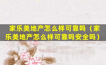 如果您想了解家乐美地产的可靠性,以下是一些可以考虑的因素: