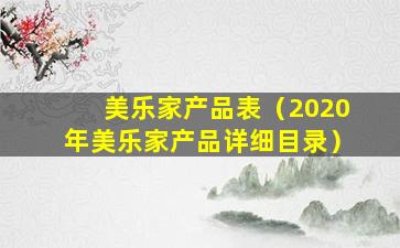 很抱歉,我无法提供2020年美乐家产品的详细目录,因为我的知识截止日期是2023年,而且我无法访问实时的数据库或外部资源来获取最新的产品目录。不过,我可以提供一些关于美乐家(Melaleuca)公司的基本信息。