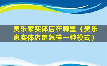 截至我的知识更新日期(2023年),美乐家(Melaleuca)是一家总部位于美国爱达荷州的大型健康与保健产品公司,它主要通过直销模式销售其产品。美乐家并不像传统的零售商那样在各地开设实体店铺,而是通过其会员网络进行产品销售。