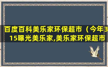 关于“今年315曝光美乐家,美乐家环保超市骗局”的说法,目前没有官方的详细报道或证据支持这一说法。315通常指的是中国的消费者权益日,每年的3月15日,中国中央电视台会举办一场名为“315晚会”的节目,揭露一些企业的欺诈行为或产品质量问题。