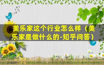 关于“美乐家这个行业怎么样”,可以从以下几个方面来分析: