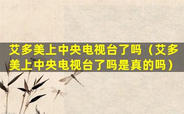 截至我的知识更新日期(2023年),关于“艾多美”是否上过中央电视台的具体情况,我无法提供确切的信息。中央电视台(CCTV)是中国最大的国家级电视台,经常播放各种新闻、娱乐、教育等内容。如果“艾多美”是一个品牌、产品或者事件,并且它与中央电视台有过合作或者被报道,那么它可能在某个时间段出现在CCTV的节目中。