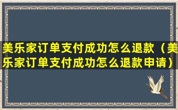 关于美乐家(Melaleuca)订单支付成功后的退款问题,通常需要遵循以下步骤: