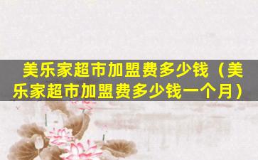 美乐家超市(MeiLeJia Supermarket)是一家在中国运营的连锁超市品牌。关于加盟费用,这通常取决于多种因素,包括店铺的位置、大小、装修标准以及品牌方对加盟商的具体要求等。