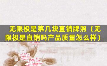 无限极(Infinitus)是中国的一家直销公司,隶属于香港李锦记集团。无限极在中国的直销牌照编号是第10号。中国自2006年开始发放直销牌照,无限极是在2007年获得直销牌照的。请注意,直销牌照的发放情况可能会随着时间的推移而发生变化,因此具体的牌照编号可能需要通过官方渠道进行最新查询。