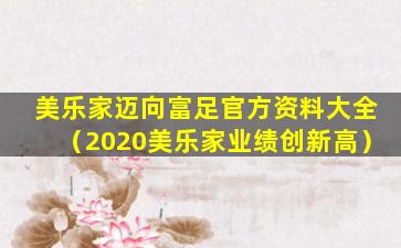 截至我知识更新的时间点(2023年),关于“2020美乐家业绩创新高”的具体信息并不详细。美乐家(Melaleuca)是一家总部位于美国爱达荷州的直销公司,主要销售健康、个人护理、家庭清洁和营养补充品等产品。