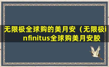 无限极是一家中国的直销公司,主要销售健康产品。关于“无限极全球购的美月安”,这可能是指无限极公司推出的一款产品,但具体信息需要从官方渠道或授权的销售点获取。