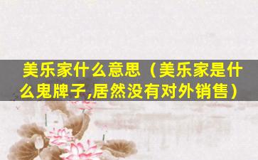 如果你需要更具体的信息,比如美乐家是一个特定的品牌或者产品,你可能需要提供更多的上下文或者详细信息,以便得到更准确的解释。