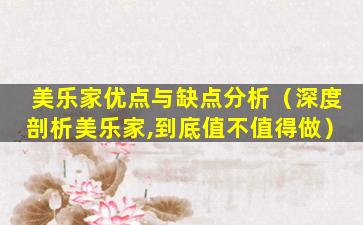 - 个人兴趣:如果你对美乐家的产品感兴趣,并且愿意投入时间和精力去推广,那么这可能是一个机会。