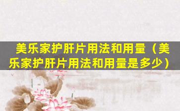 美乐家(Melaleuca)是一家美国的健康产品公司,其产品线包括多种保健品,其中包括护肝片。由于我无法访问最新的数据库或产品信息,我无法提供确切的美乐家护肝片的用法和用量。