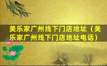 2. 客服热线:拨打美乐家的客服热线,询问广州门店的具体地址。