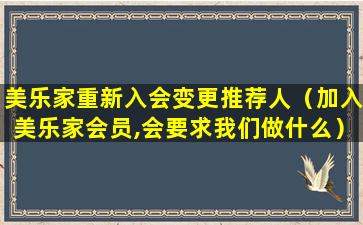 如果您是美乐家的会员,并且希望重新入会或变更推荐人,您应当遵循美乐家的官方规定和流程。通常,直销公司会有明确的会员政策和变更推荐人的程序。您需要联系美乐家的官方客服或查阅其官方网站上的相关政策,了解具体的操作步骤和要求。