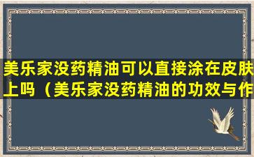 请注意,不同品牌的精油可能有不同的纯度和使用建议,因此最好遵循您所购买品牌的具体指导。如果您有关于美乐家没药精油的具体使用问题,建议直接咨询美乐家的官方指导或专业人士。