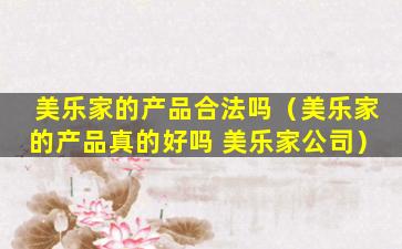 截至我的知识更新日期(2023年),美乐家在中国是否合法运营,需要查阅最新的官方信息。如果您想了解美乐家在中国的合法性,建议直接咨询中国国家市场监督管理总局或查看其官方网站上的直销企业名录,以获取最准确的信息。同时,消费者在购买直销产品时,也应确保产品来源合法,避免参与非法直销活动。