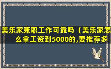 关于“美乐家兼职工作”的可靠性,这取决于多个因素: