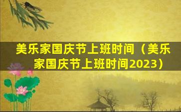 由于我无法获取最新的公司内部通知或政策,建议您直接联系美乐家的客服或查看公司的官方公告,以获取最准确的国庆节上班时间信息。通常,公司会在节假日前通过官方渠道发布相关的工作安排通知。如果您是美乐家的会员或员工,也可以通过内部通讯系统或工作群组了解相关信息。