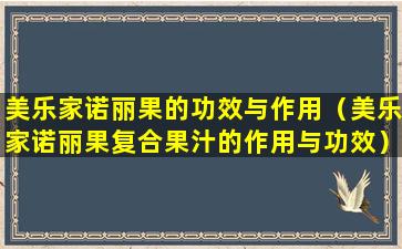 美乐家(Melaleuca)是一家美国的健康产品公司,其产品线包括营养补充品、个人护理产品、家庭清洁用品等。诺丽果复合果汁是美乐家的一款产品,它含有诺丽果(Noni)提取物,以及其他成分,旨在提供健康益处。