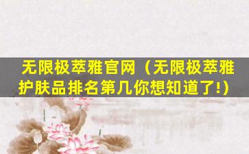 截至我的知识更新日期(2023年),无限极萃雅的官方网站通常会提供品牌故事、产品信息、使用方法、用户评价以及购买渠道等内容。如果您想要访问无限极萃雅的官方网站,可以通过搜索引擎输入“无限极萃雅官网”或者直接访问无限极的官方网站,然后在网站内查找萃雅品牌相关信息。