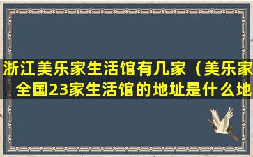 如果您是指美乐家在浙江的会员服务中心或展示中心,这些地点的数量可能会随着时间和公司策略的变化而变化。为了获取最准确的信息,建议直接联系美乐家官方或访问其官方网站查询最新的服务中心或展示中心位置。