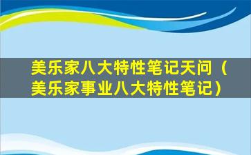 美乐家(Melaleuca)是一家美国的直销公司,主要销售健康、个人护理、家庭清洁和营养补充品等产品。关于“美乐家八大特性笔记天问”,这个表述似乎是对美乐家产品或商业模式的某种或评价。由于这个表述不是一个标准的术语或广泛认可的概念,我无法提供一个确切的解释。