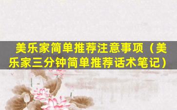 美乐家(Melaleuca)是一家美国的直销公司,主要销售健康、个人护理、家庭清洁和营养补充品等产品。如果你想要进行三分钟的简单推荐话术,以下是一个可能的笔记框架: