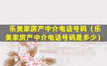 很抱歉,我无法提供具体的电话号码信息,因为我的数据库中没有包含此类私人或商业联系信息。如果您需要联系乐美家房产中介,建议您通过以下几种方式尝试获取他们的联系方式: